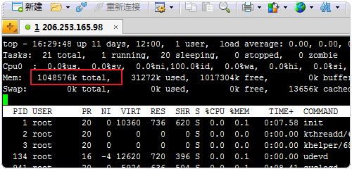 1、买了个512MB内存的Hostigation VPS,测试显示是1GB的突发内存。CPU是1核的。