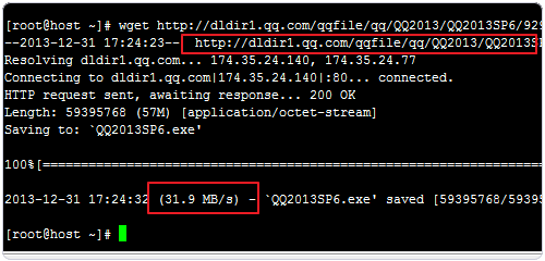 4、这是用Hostigation VPS下载国内腾讯QQ文件的速度,超过了30MB/s。