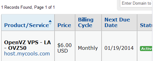 10、支付成功后,返回到Hostigation的用户管理中心就能看到自己的VPS主机激活开通了。