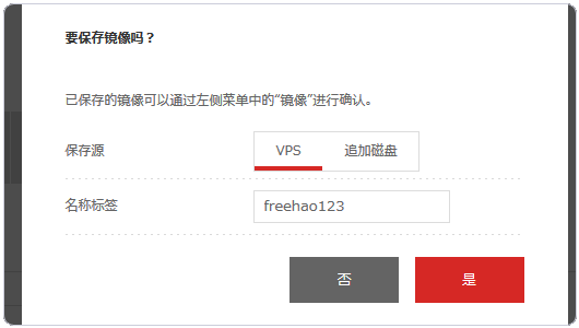 9、保存镜像可以用来帮助你保存你自己的VPS操作系统。