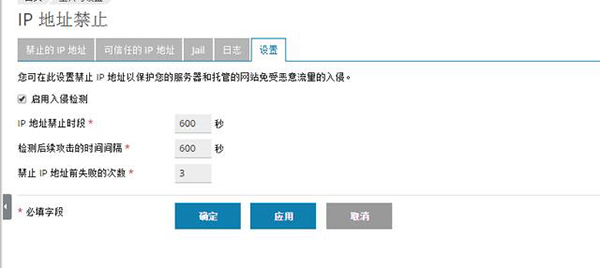 Plesk支持Fail2ban功能,能够自动禁止对你的服务器会生成恶意流量的 IP 地址和网络,阻断暴力攻击。Plesk支持对禁止的IP地址、可信任的IP地址、Jails(包括激活、停用、添加新的Jails和添加新的Jails过滤器)、日志和相关设置(IP 地址禁止时段、检测后续攻击的时间间隔、禁止IP 地址前的失败次数)等进行管理。