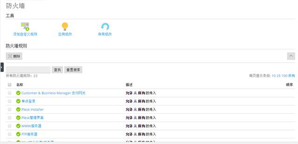 Plesk支持根据需要开启或禁用防火墙并进行相应设置来控制各数据流的传入和传出,有效保障网络的安全。在Plesk的防火墙模块启用防火墙管理后,即可通过自定义Plesk防火墙规则的方式来允许或拒绝某些IP地址或网络的信息进出,有效把控信息交流的通道,从根本阻断某些存在安全隐患的网络的入侵,做到基础安全防控。