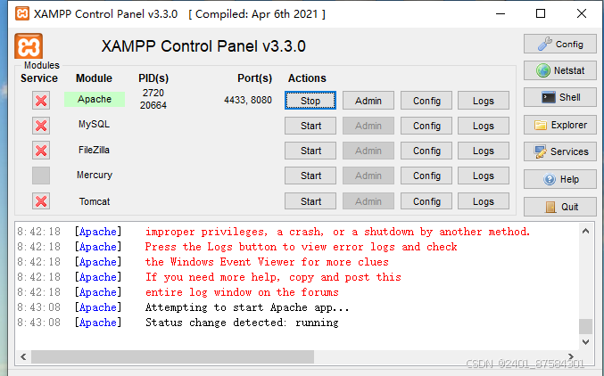 启动XAMPP:安装完成后,打开XAMPP控制面板,启动Apache和MySQL服务。如果两个服务都能正常启动,并且没有报错,那么恭喜你,基础环境已经搭建成功了!