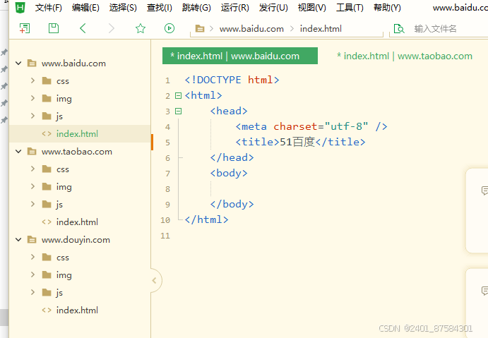 在www.baidu.com文件夹中,创建一个index.html文件,内容如下: