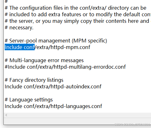 删除该行前面的#号,取消注释,这样Apache就会加载虚拟主机的配置文件。