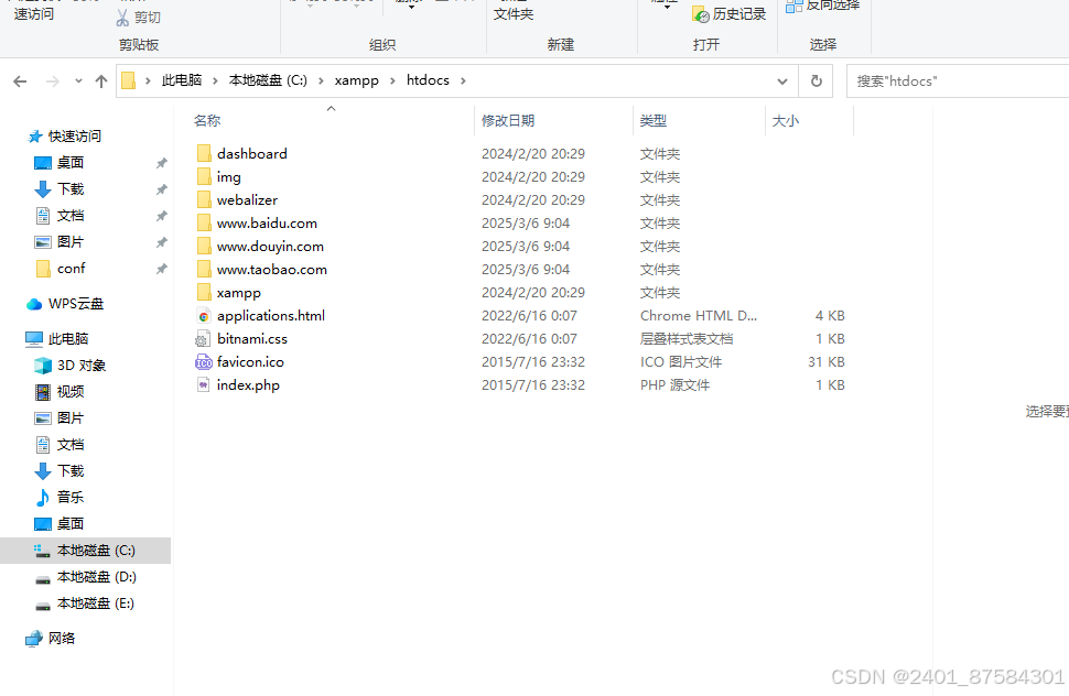 在C:\xampp\htdocs目录下,分别创建www.baidu.com,www.taobao.com和www.douyin.com三个文件夹。