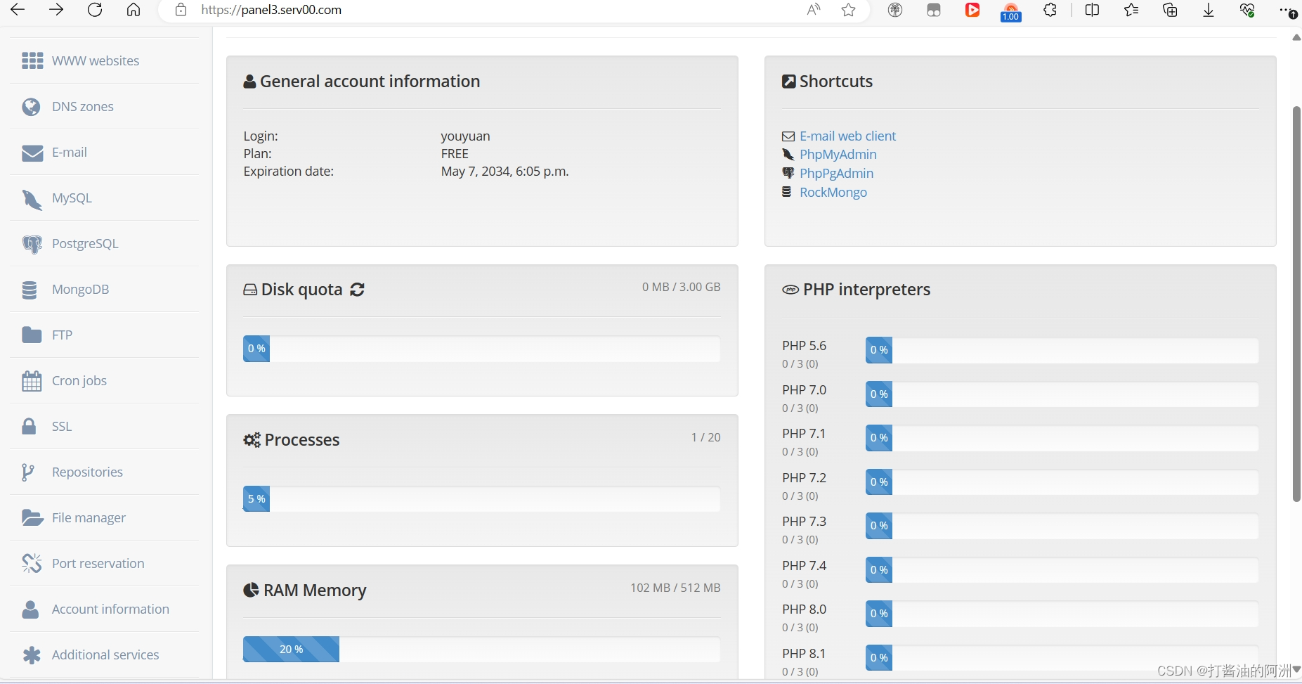 Serv00 是一家提供免费虚拟主机的厂商。它的免费套餐包含: